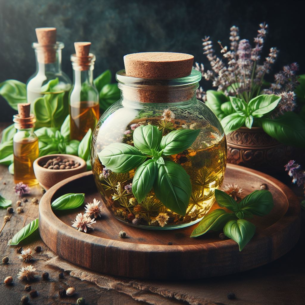 Basil-Infused Olive Oil: This flavorful olive oil is great for dressing salads or cooked vegetables. Combine 1 cup of olive oil with 1 tablespoon of dried basil leaves in a small saucepan over low heat. Warm the mixture for about 10 minutes, then remove from the heat and let it steep for another hour.