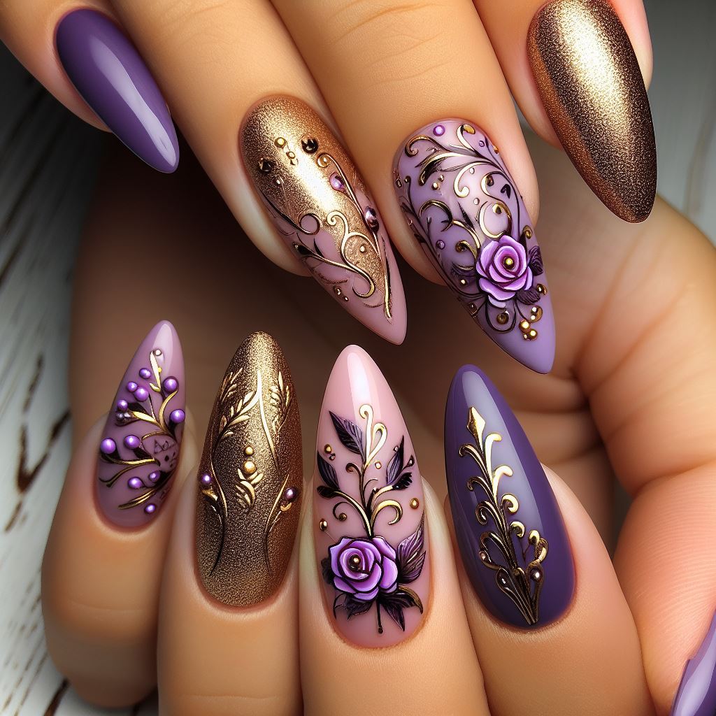What are Some Popular Nail Art Designs That Use Purple And Gold Colors