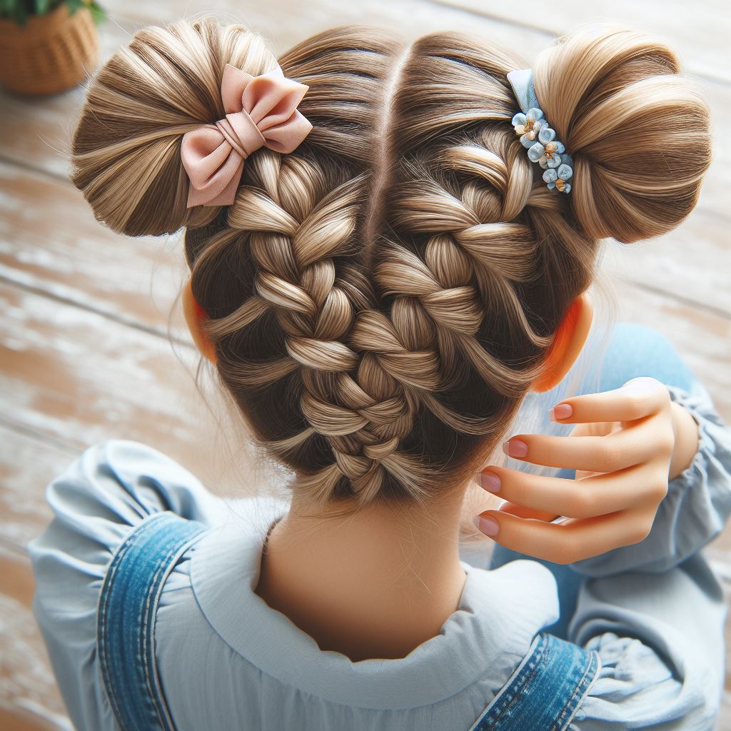 Bun hairstyles are fun and easy to do. Rubber band sections make sure the hair lays flat. Pairing two bun styles together makes them stand out. Choose colorful rubber bands to create a cheerful vibe.
